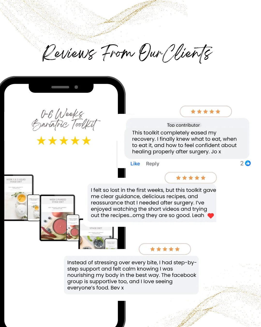 Many women feel lost once they move past the liquid and soft diet stages. That’s why so many of my clients who bought the 0–6 Weeks Toolkit also chose the 6 Weeks & Beyond & Emotional Eating Toolkit, it’s the SECRET to transforming your weight for LIFE.
